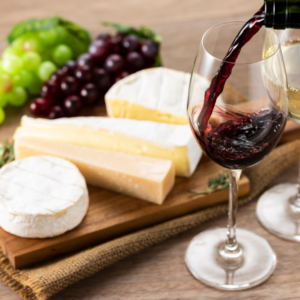 Basket of French wines, dry sausage and Brie cheese with 2 pre-baked breads. The art of French living, delivered right to your door.