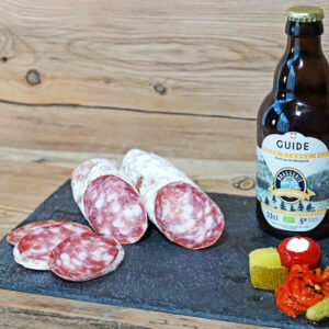 Basket of craft beers, dry sausages and terrine delivered with 2 pre-cooked breads.